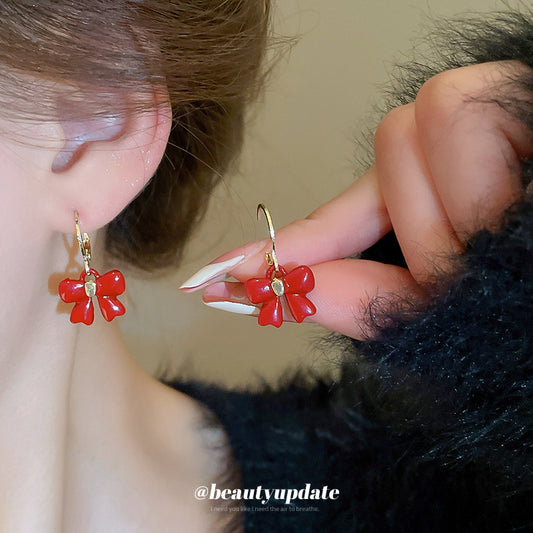 A廠【HE23072】安可拉紅噴漆蝴蝶結耳扣女、簡約氣質耳環森系甜美耳飾小眾高級感 24.10-4