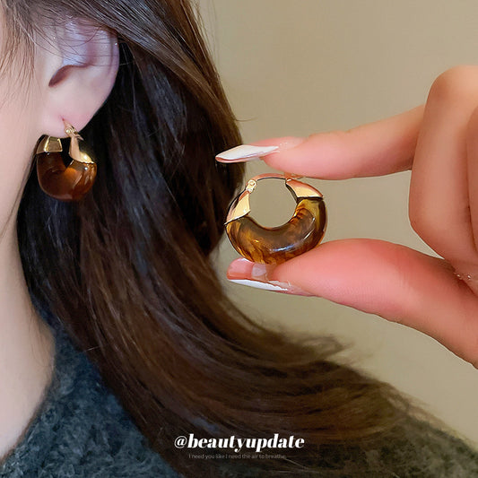 A廠【HE23114】美拉德暈染U型籃子耳環女法式復古氣質耳環時尚ins耳飾輕奢高級感 24.10-4