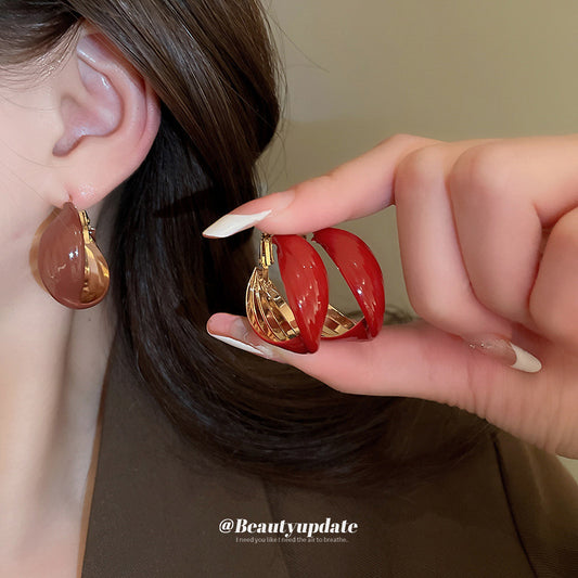 A廠【HE23199】925銀針滴油扭曲U型籃子耳圈女歐美誇張耳環時尚氣質耳環小眾高級感 24.10-4