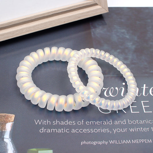 D廠【A18】韓版髮飾 人魚姬系列電話線髮繩 金光貼膜白色頭繩皮筋髮圈女 24.03-1「需單款10個起批」「D廠-單筆結帳需滿,NT$600出貨(不含運費)」