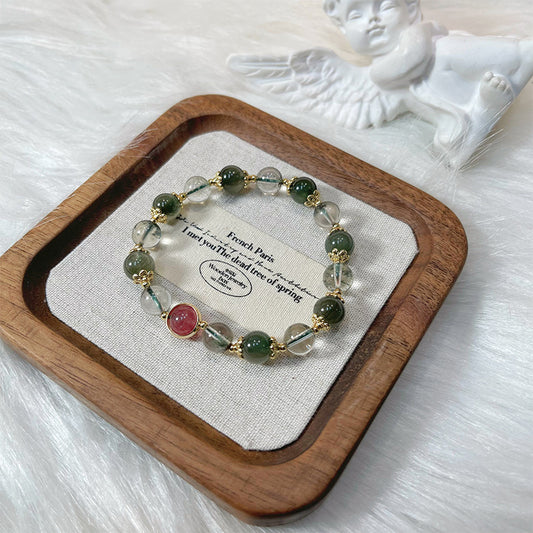 C廠【vsl1853】綠幽靈綠髮晶草莓晶手鍊 24.04-4「需2件起批」