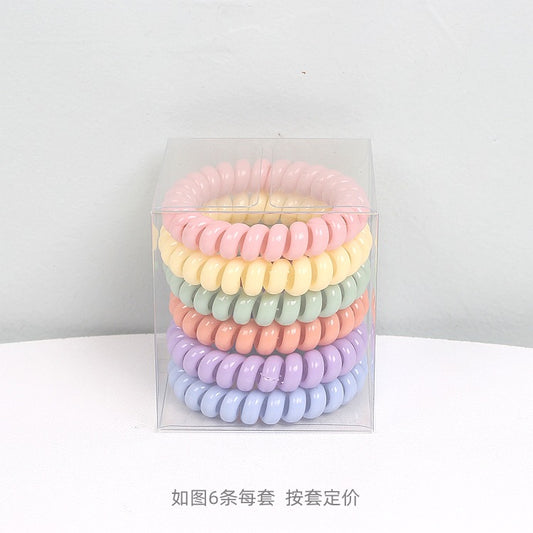 D廠【A21】跨國時尚髮飾基本款大號電話線髮圈6條盒裝頭繩洗漱紮馬尾皮筋 24.03-1「D廠-單筆結帳需滿,NT$600出貨(不含運費)」