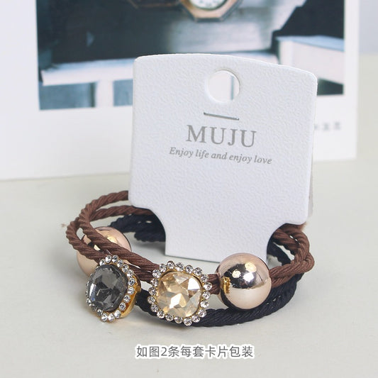D廠【B009】經典黑咖甜酷風髮飾閃亮水晶髮繩高級感2條套裝皮筋髮圈百搭頭繩 24.02-4「D廠-單筆結帳需滿,NT$600出貨(不含運費)」