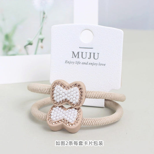 D廠【B010】輕奢風珍珠蝴蝶結髮飾高級感2條套裝髮繩加粗高彈性斜紋皮筋頭繩 24.02-4「D廠-單筆結帳需滿,NT$600出貨(不含運費)」