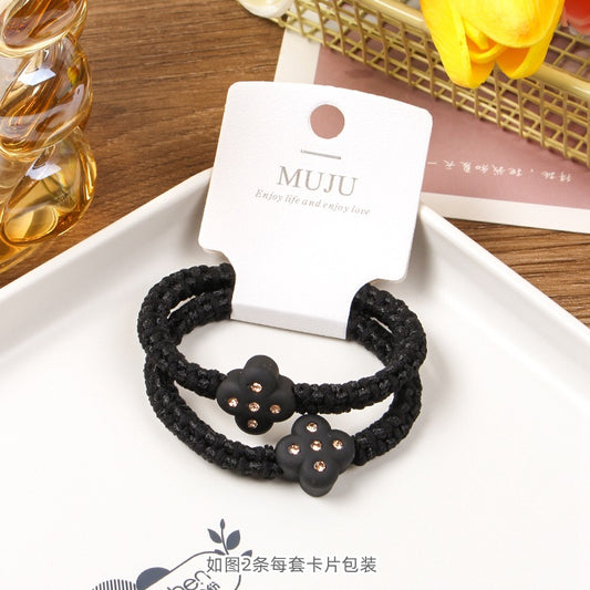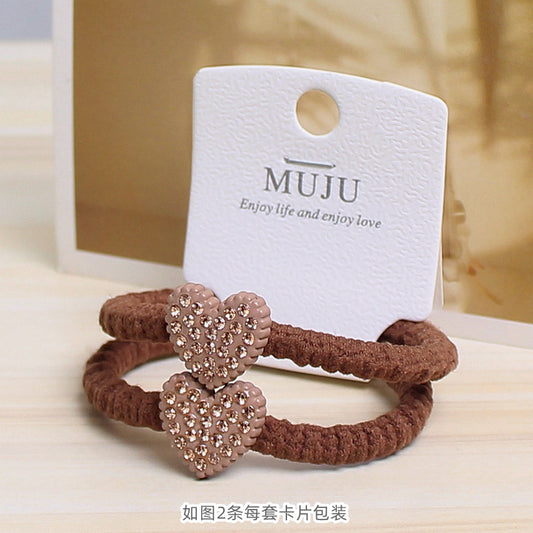 D廠【B152】高級感鑲鑽愛心髮繩精美2條卡裝皮筋加粗高彈性皮套髮圈馬尾頭繩 24.05-1「D廠-單筆結帳需滿,NT$600出貨(不含運費)」