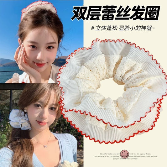 D廠【B151】【卡裝】雙層蕾絲大腸圈頭繩超大號法式鏤空髮圈丸子頭皮筋髮繩 25.05-3「D廠-單筆結帳需滿,NT$600出貨(不含運費)」