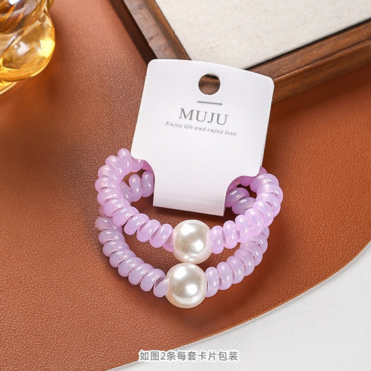 D廠【B149】2條卡裝電話線圈珍珠繩甜美果凍色馬尾皮筋 25.05-3「D廠-單筆結帳需滿,NT$600出貨(不含運費)」