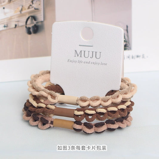 D廠【B160】韓版卡裝髮飾實惠3條套裝髮繩簡約咖色馬尾皮筋髮圈時尚蕾絲頭繩 24.03-1「D廠-單筆結帳需滿,NT$600出貨(不含運費)」