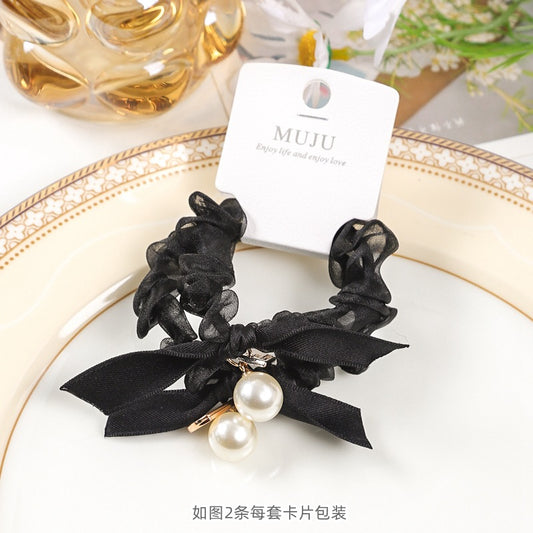 D廠【B140】高級感珍珠飄帶小腸髮圈2條卡裝皮筋頭繩甜美少女髮飾高馬尾髮繩 24.10-2「D廠-單筆結帳需滿,NT$600出貨(不含運費)」