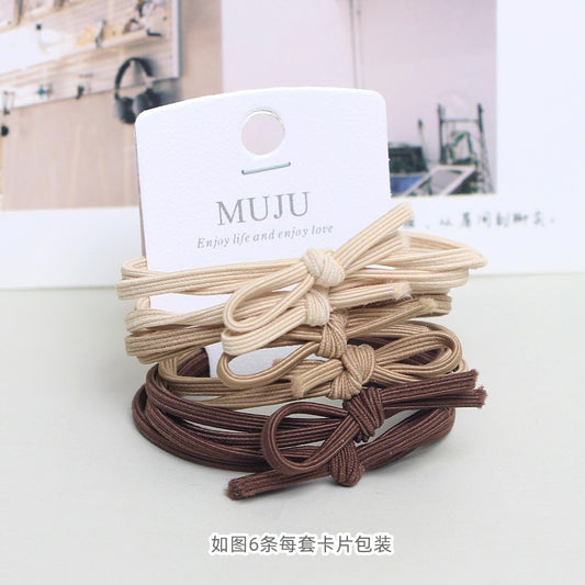D廠【B177】實惠6套裝髮繩高彈性二合一簡約咖色系打結皮筋高級感卡裝頭繩 24.02-4「D廠-單筆結帳需滿,NT$600出貨(不含運費)」