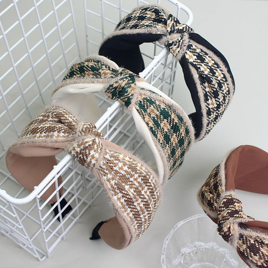 D廠【C023】輕奢小香風韓版髮飾新款時尚格紋布藝打結頭箍氣質百搭寬邊髮箍 24.03-1「D廠-單筆結帳需滿,NT$600出貨(不含運費)」