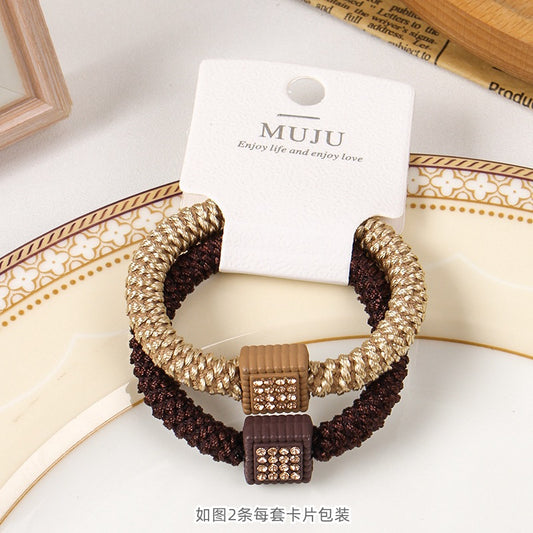 D廠【B462】高級感水鑽髮飾精美2條卡裝頭繩髮圈加粗高彈性編織皮筋馬尾髮繩 24.08-5「D廠-單筆結帳需滿,NT$600出貨(不含運費)」