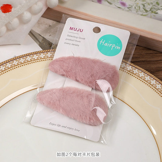 D廠【D275】2個卡裝甜美仿兔毛髮夾秋冬新款毛絨髮卡可愛女孩BB夾側邊瀏海夾 24.11-5「D廠-單筆結帳需滿,NT$600出貨(不含運費)」