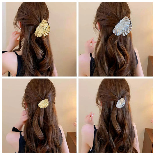 D廠【D252】高級金屬感貝殼抓夾輕奢度假風髮夾新款2025髮飾時尚後腦勺鯊魚夾 25.05-5「D廠-單筆結帳需滿,NT$600出貨(不含運費)」