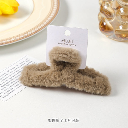 D廠【D266】新款秋冬毛絨抓夾大11cm後腦勺髮夾毛毛髮飾甜美仿兔毛鯊魚夾 24.09-4「D廠-單筆結帳需滿,NT$600出貨(不含運費)」