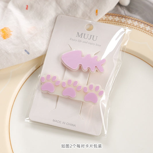 D廠【D280】2個卡裝髮夾甜美魚骨小腳印鴨嘴夾高級感少女邊夾髮卡碎髮瀏海夾 24.12-3「D廠-單筆結帳需滿,NT$600出貨(不含運費)」