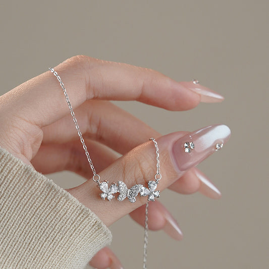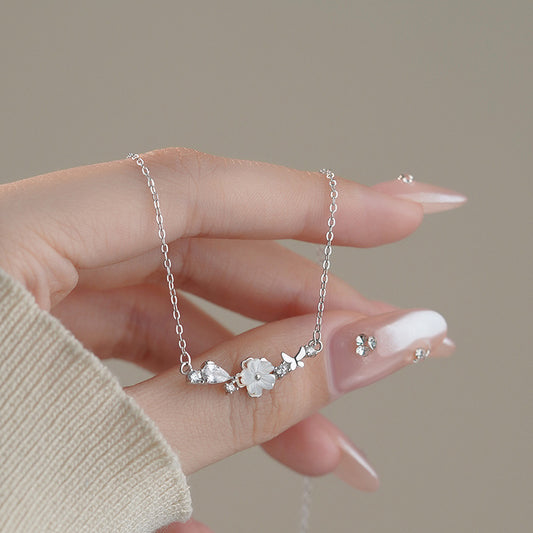 E廠【YC0307N】S999足銀輕奢花朵蝴蝶項鍊女氣質百搭小眾高級設計鎖骨鏈 25.03-4