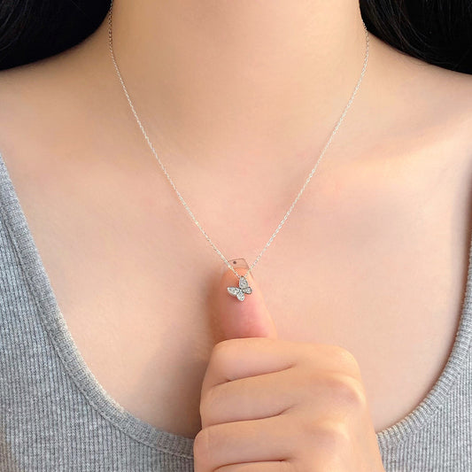 E廠【YC0313N】S999足銀蝴蝶項鍊高級設計感百搭日常小清新文藝女鎖骨鏈 24.08-4