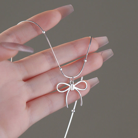 E廠【YC0357N】S925純銀蝴蝶結項鍊甜美可愛氣質文藝風小清新小眾鎖骨鏈 25.01-2
