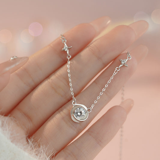 E廠【YC0324N】999足銀芒星旋轉項鍊靈動高級設計感輕奢甜美清新鎖骨鏈 25.04-1