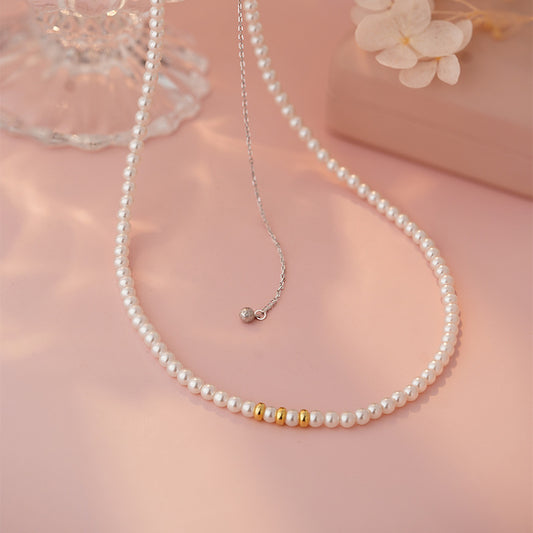 E廠【YC0411N】S925純銀簡約風珍珠項鍊復古法式個性時尚小眾清新鎖骨鏈 25.06-1