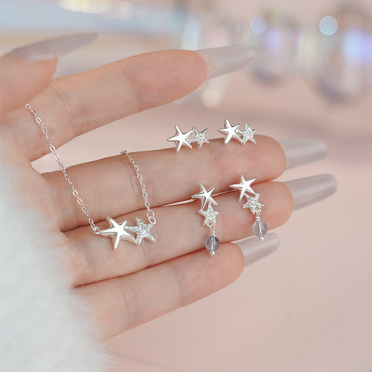 E廠【YC0395N】原創S999足銀海星之韻系列三件組清新夏季文藝精緻鎖骨鏈 25.04-3