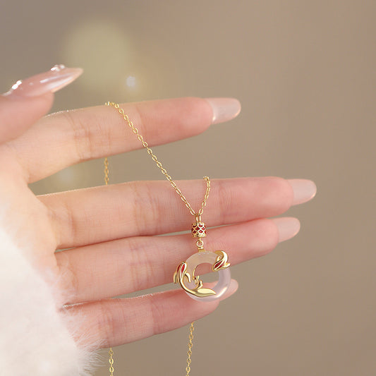 E廠【YC0358N】S999足銀錦鯉玉髓項鍊本命年國風新中式精緻高級感簡約鎖骨鏈 25.03-4