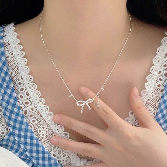 E廠【YC0427N】S925純銀蝴蝶結流蘇項鍊公主簡約可愛甜美時尚禮物鎖骨鏈 24.07-4