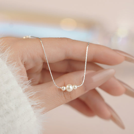 E廠【YC0402N】S925純銀珍珠項鍊自然簡約風個性創意時尚小眾清新鎖骨鏈 25.04-1