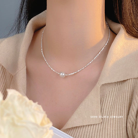 E廠【YC0471N】S999足銀碎銀子珍珠項鍊女輕奢時尚ins高級感鎖骨鏈 24.06-1