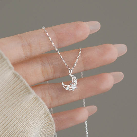 E廠【YC0454N】S925純銀韓國月亮星星項鍊女氣質甜美少女心簡約疊戴鎖骨鏈 25.03-4