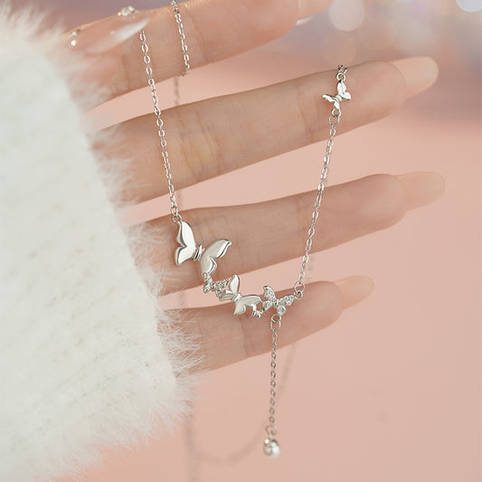 E廠【YC0665N】S999足銀百搭五隻蝴蝶項鍊仙女風簡約高級設計氣質鎖骨鏈 25.03-4
