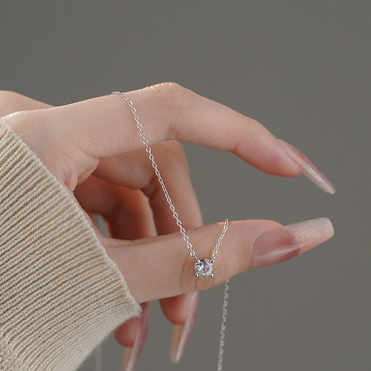 E廠【YC0619N】S999足銀氣質鋯石項鍊女小眾清新甜美文藝少女高級鎖骨鏈 25.03-2