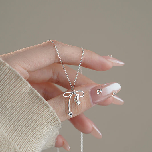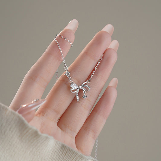 E廠【YC0447N】S925純銀韓版蝴蝶結項鍊甜美氣質ins溫柔氣質簡約鎖骨鏈 25.03-4