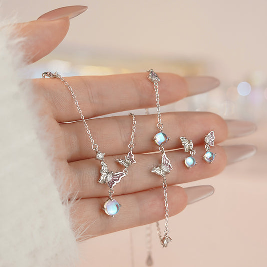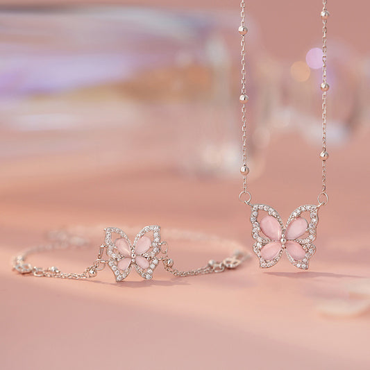 E廠【YC0617N】原創S925純銀甜美風粉蝶琦夢套裝 25.04-1
