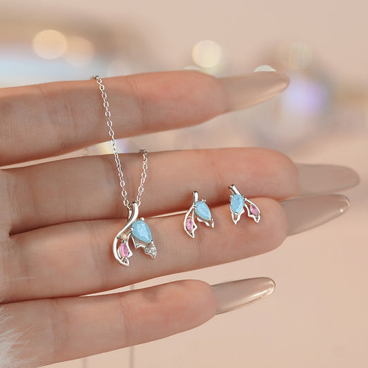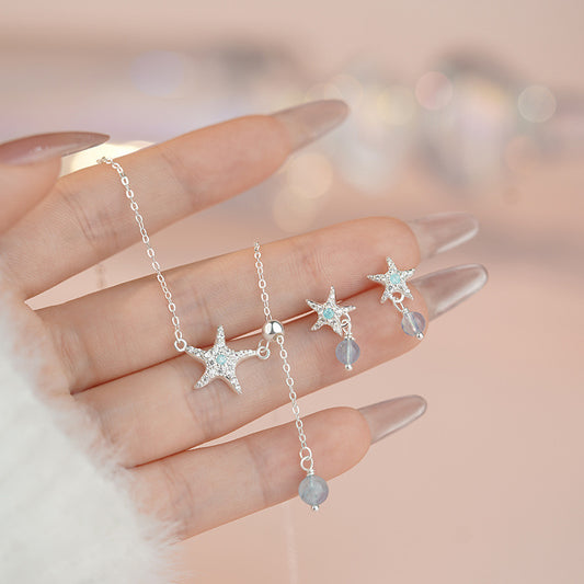 E廠【YC0515N】原創S999足銀海星甜夢藍韻系列套裝清新夏季文藝精緻項鍊 25.04-4