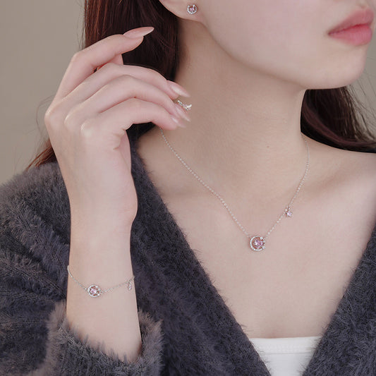 E廠【YC0497N】原創S999足銀愛環粉星套裝情人節禮物甜美高級感設計鎖骨鏈 25.02-2