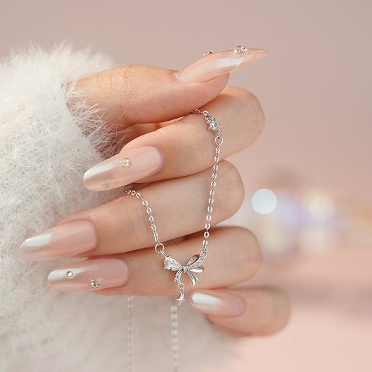 E廠【YC0648N】S999足銀蝴蝶結項鍊小眾高級感甜美在逃公主精緻鎖骨鏈 25.03-3