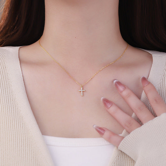 E廠【YC0496N】S925純銀十字架項鍊個性百搭小眾經典時尚氣質輕奢鎖骨鏈 24.12-3
