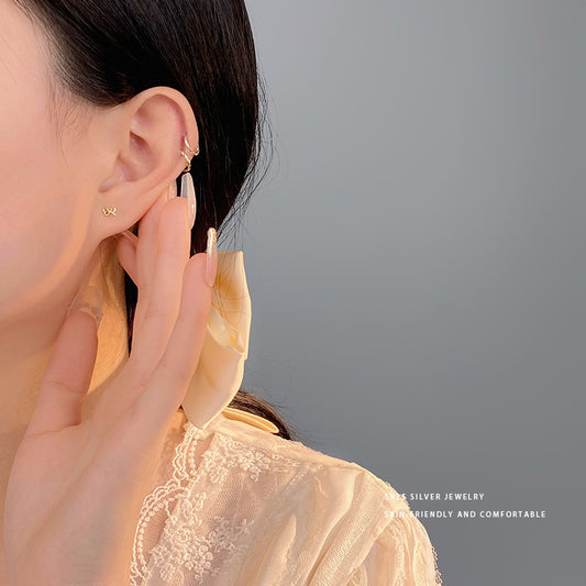 E廠【YC10002E】S925純銀簡約線條蝴蝶結女甜美百搭時尚日常新款耳環耳環 24.04-3