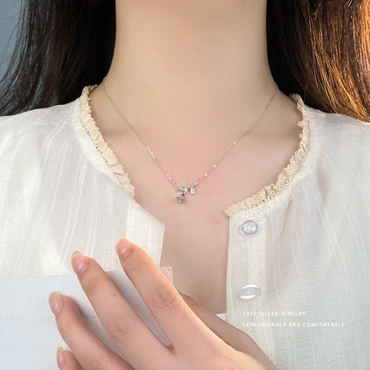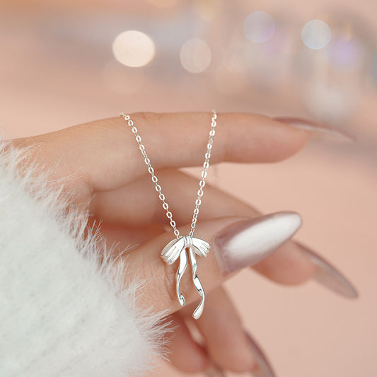E廠【YC0887N】999足銀蝴蝶結項鍊時尚設計感新款甜美文藝小眾鎖骨鏈 25.04-4