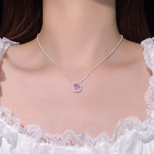 E廠【YC0854N】S925純銀粉鑽方形項鍊高級小眾百搭時髦設計感幾何鎖骨鏈 24.11-2