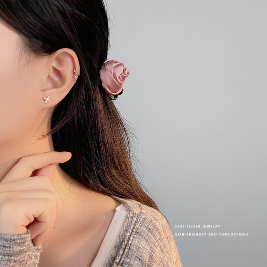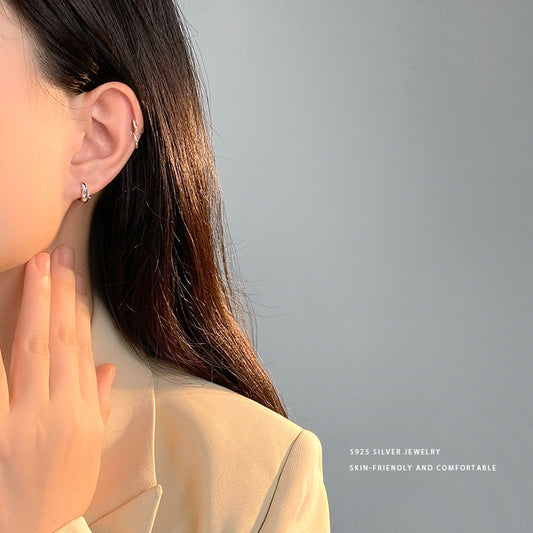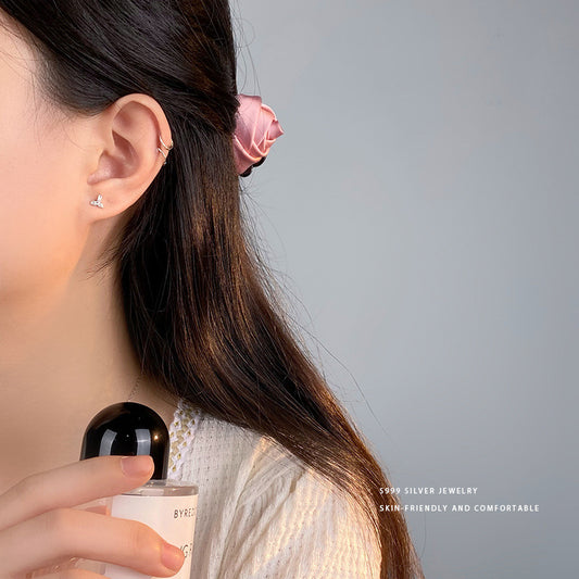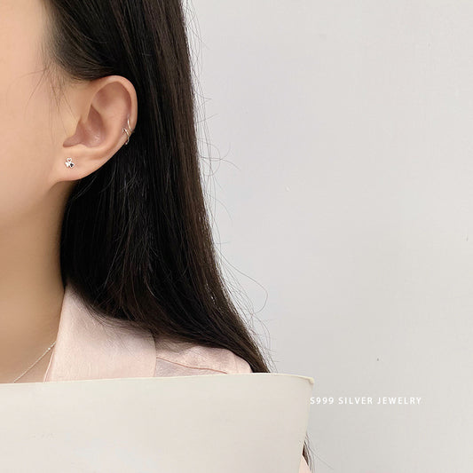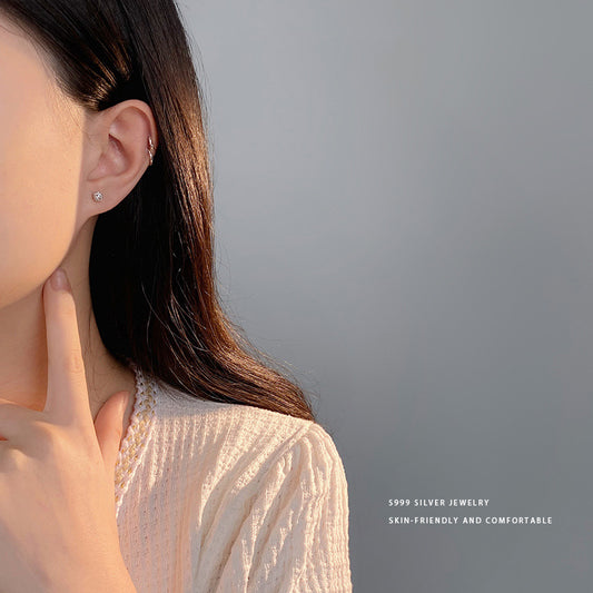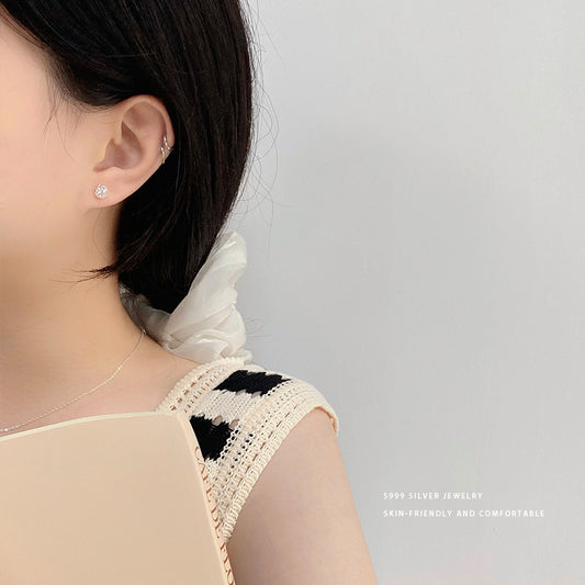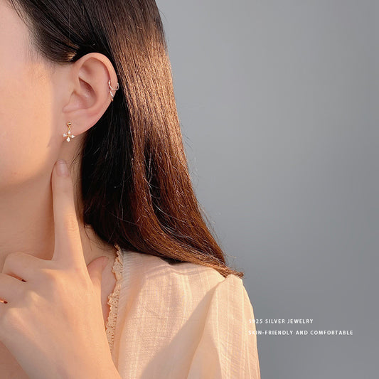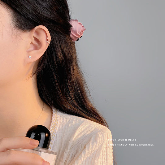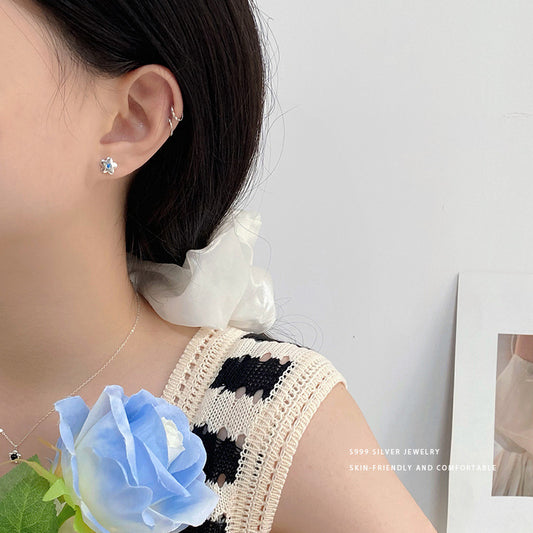 E廠【YC10118E】S999足銀鑲鑽四芒星耳環女小眾設計感高級耳骨釘秋冬耳飾 24.05-4