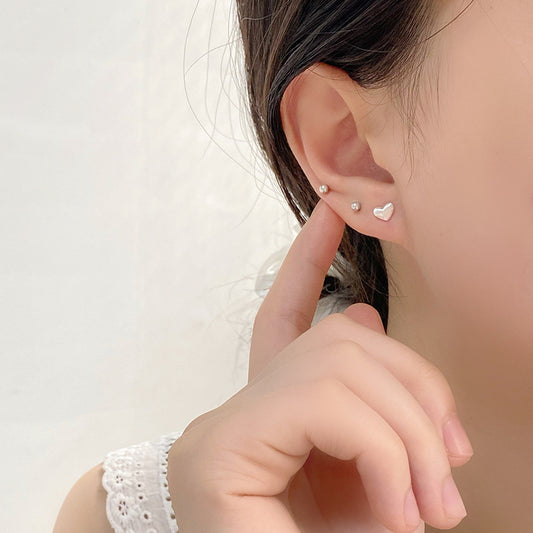 E廠【YC10131E】S999足銀迷你愛心三葉草螺絲耳環女可愛百搭睡覺免摘養耳飾品 24.06-1