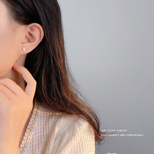 E廠【YC10127E】S999足銀簡約拉絲橢圓形耳環女小巧新款耳骨釘個性冷淡風耳飾品 24.05-4