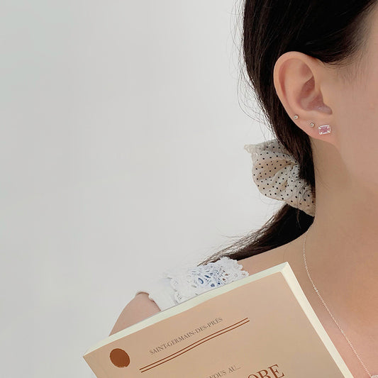 E廠【YC10125E】S999足銀簡約方形鋯石耳骨釘百搭學生小眾養耳洞耳環女 24.07-1