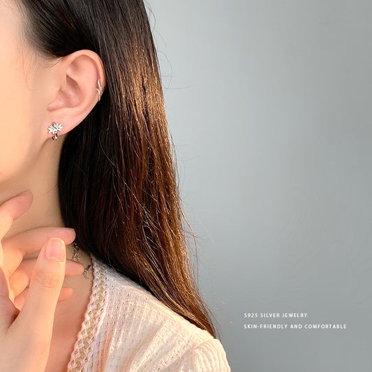 E廠【YC10134E】S925純銀輕奢鑲鑽樹葉耳扣女高級感小眾設計感新款氣質耳圈 24.05-1