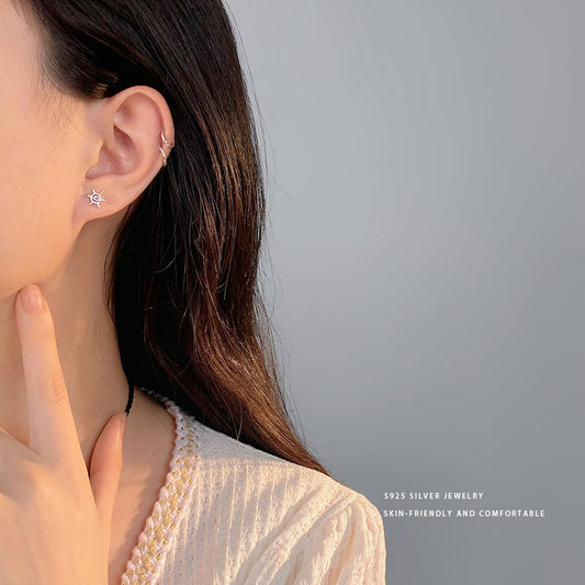 E廠【YC10139E】S999足銀甜酷鋯石星星珍珠耳環女款精緻耳環小巧個性耳飾 24.05-4