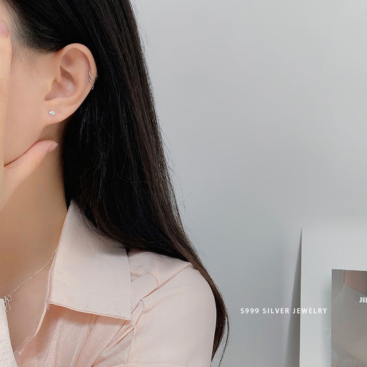 E廠【YC10142E】S999足銀愛日常心幾何耳環女小巧個性耳環高級感養耳洞耳環 24.06-1
