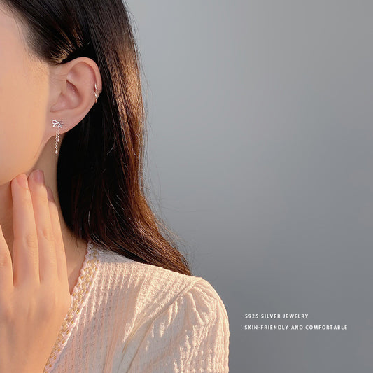 E廠【YC10169E】S925純銀時尚蝴蝶結流蘇耳環女甜美百搭ins甜酷風耳飾品 24.04-1